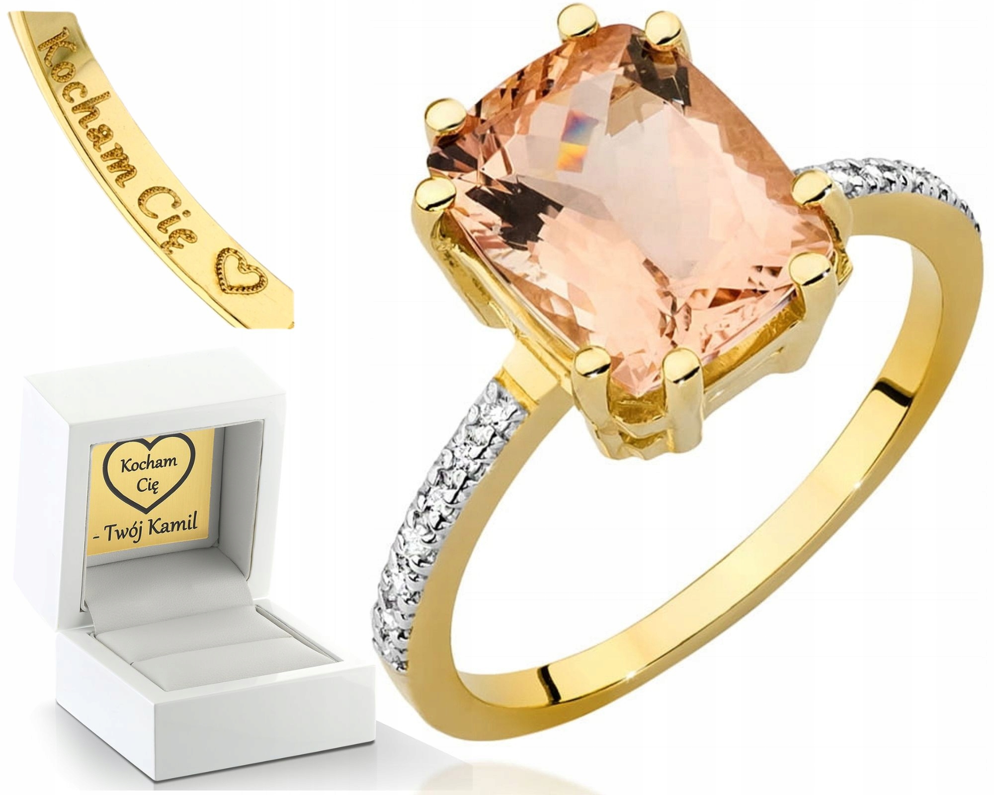 ZLATÝ PRSTÝNEK S MORGANITEM A BRILIANTY GRAVÍROVÁNÍ